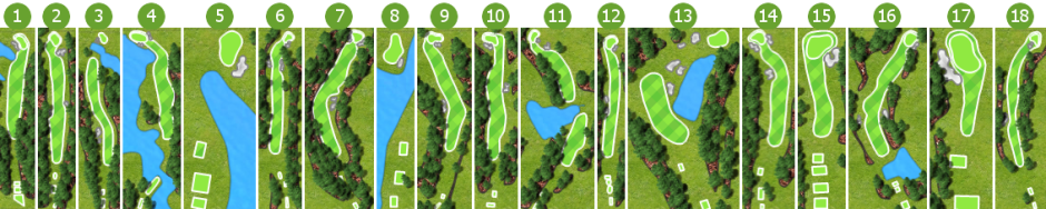 This course was the famous White to Red before being changed to its exisitng name. The overall appearance of the course is thick woods on a rolling-to-hilly terrain. The front of this course is flat and watery and the back nine is a bit hillier. There is a variety of sand bunkers, ponds, etched into hardwood flowering trees.